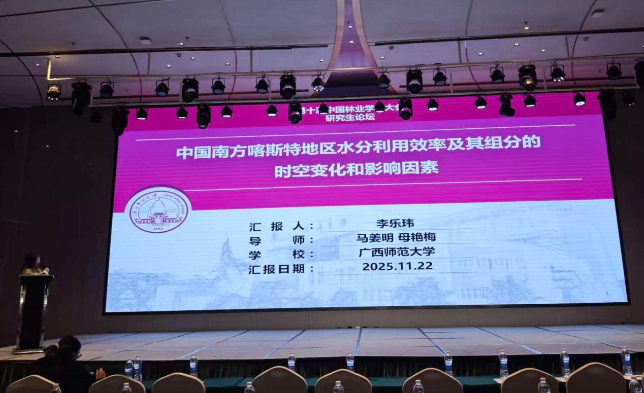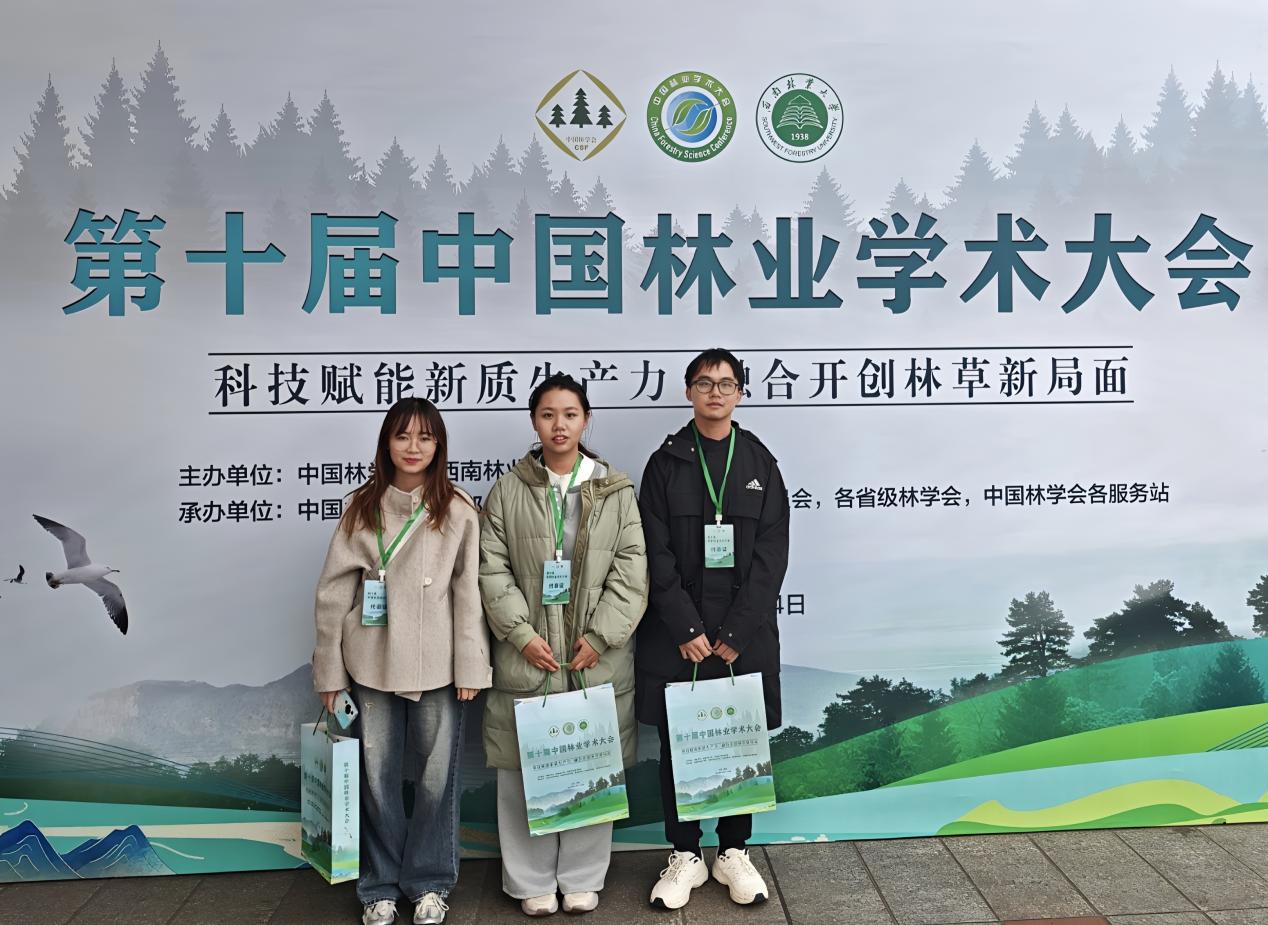 2025年11月21-23日,由中国林学会和西南林业大学共同主办的第十届中国林业学术大会在昆明顺利召开。本次大会以“科技赋能新质生产力 融合开创林草新局面”为主题,聚焦林草碳汇、生物多样性、林木生物育种、特色植物资源综合利用、林下经济等方向,设置了72个专题分会场,吸引了来自全国各高等院校、科研机构、企事业单位的专家、学者及师生代表等共3000余人参加大会。广西漓江流域景观资源保育与可持续利用重点实验室(以下简称“重点实验室”)3名研究生参加了此次大会。