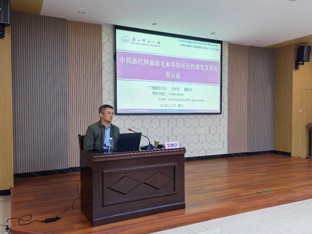 会议期间,艾郴兵副教授以“中药渣代料栽培毛木耳的可行性研究及其应用示范”为题作了大会报告。此次会议为重点实验室教师提供了展示相关领域科研成果、碰撞学术思想的高质量学术交流平台,不仅展示了重点实验室在食用菌领域的积极实践与重要成果,也拓宽了重点实验室教师的学术视野,为后续推进相关科研工作注入新的动力。
